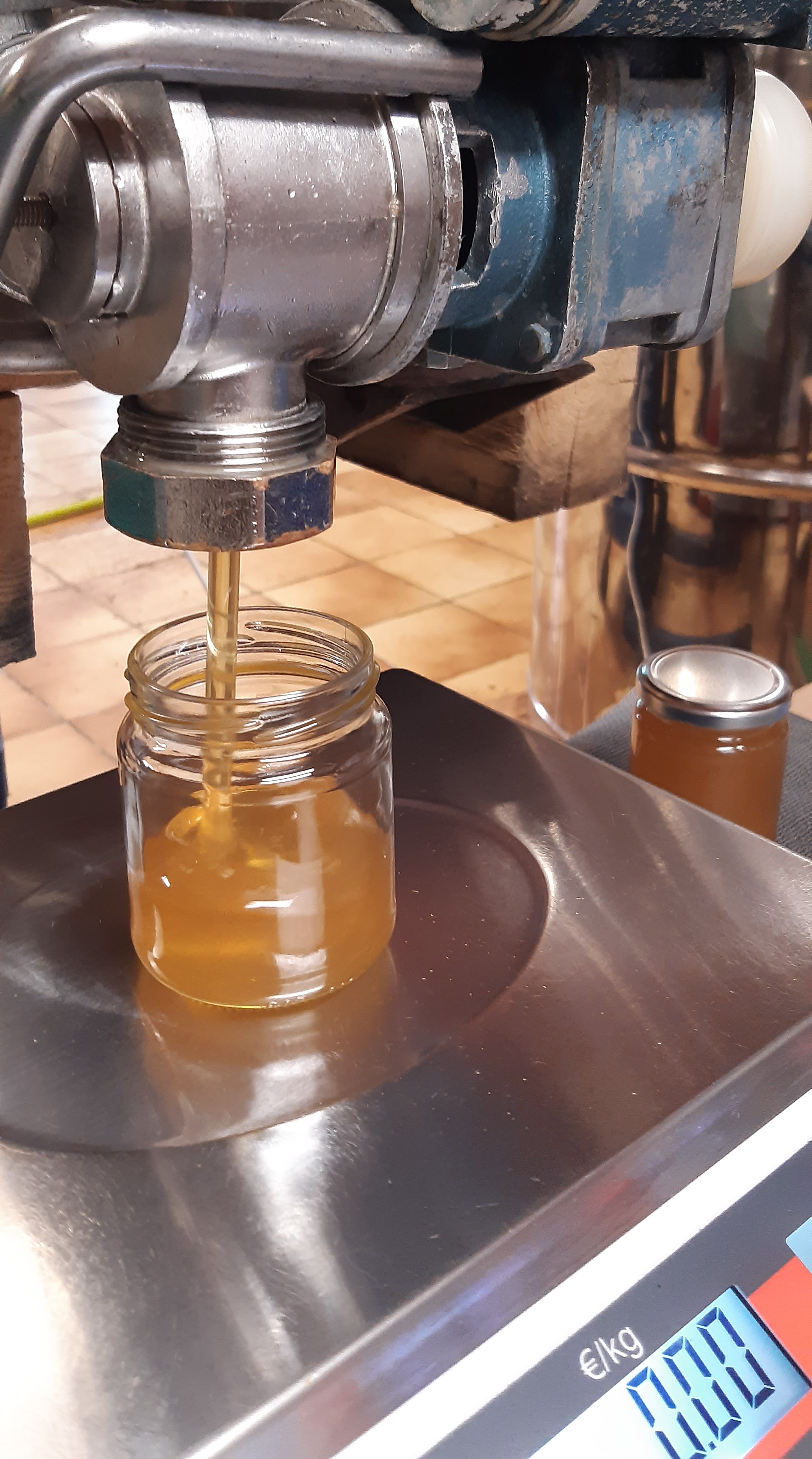 Les pots destinés aux parrains ont tous été remplis avec le miel récolté dans les ruches parrainées à Saint-Sauves d’Auvergne. Cette année, notre miel de montagne est doux et crémeux… un vrai délice !