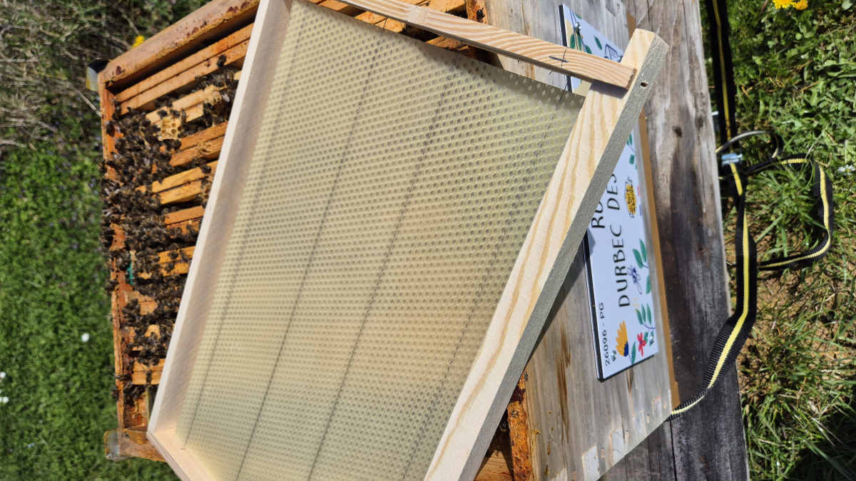 Lorsque l’apiculteur ne joue pas au bûcheron, il accompagne le développement des colonies en ajoutant des cadres munis d’une feuille de cire. Cela incite les abeilles à construire de nouveaux rayons bien droits, ce qui facilite ensuite les visites sanitaires.