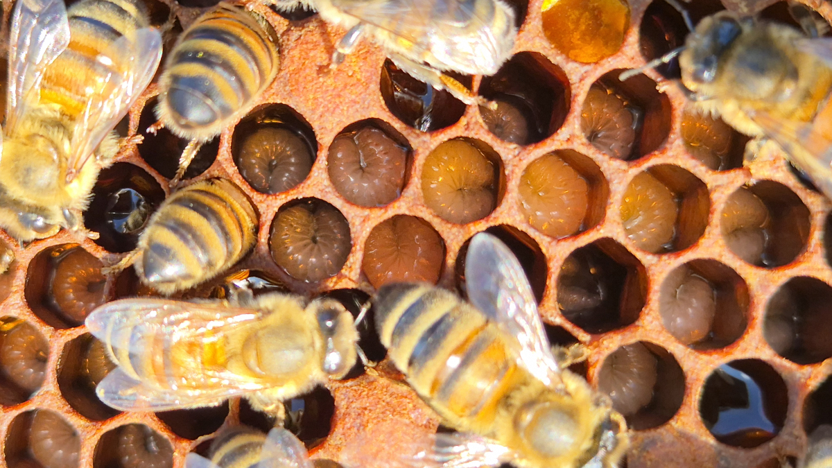 Heureusement, aucune colonie n’a été affectée par cet incident ; seules quelques ruches devront être remplacées. Elles ont été consolidées dans l’immédiat, et je profiterai d’une prochaine journée où le thermomètre atteindra au moins 15°C pour transvaser les colonies en toute sécurité. En effet, les larves ont besoin d’une température d’environ 34°C pour se développer, et un déplacement par temps frais ou venteux pourrait leur être préjudiciable.