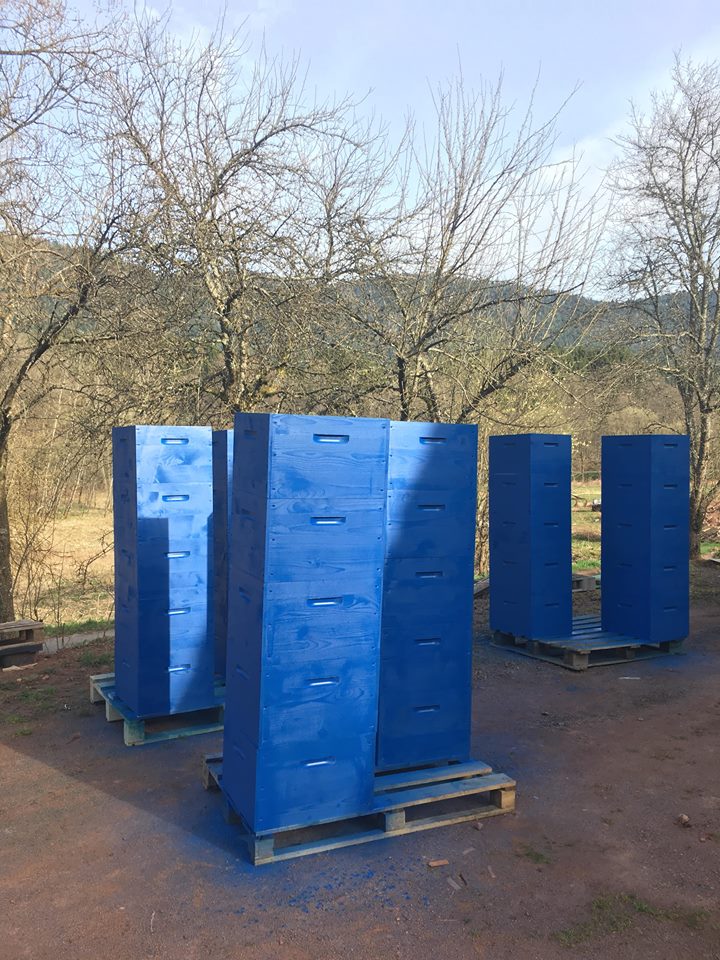 J'ai acheté 30 nouvelles ruches pour loger mes colonies d'abeilles dans de bonnes conditions, et je les ai mises en peinture en Mars. J’ai aussi préparé les nouveaux cadres que j'ai ciré.