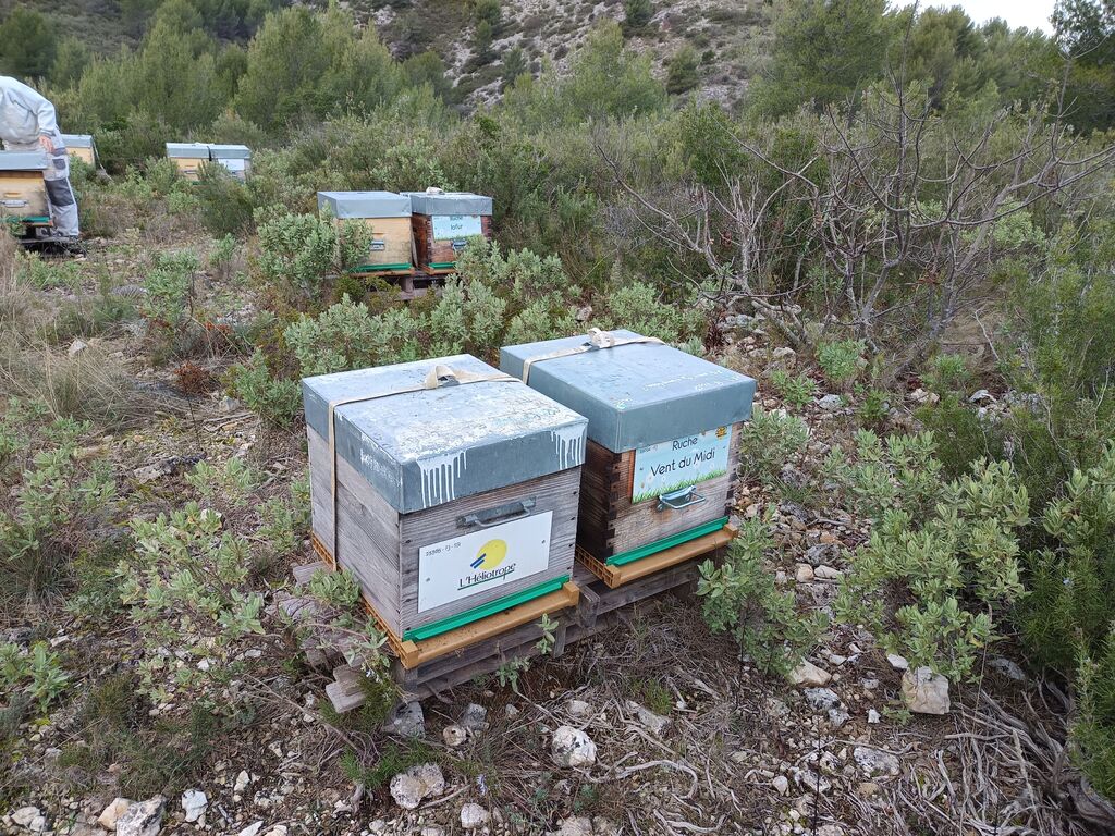 Ce qui permet de récolter un miel de printemps très clair au parfum de thym et romarin, puis un miel de garrigues beaucoup plus foncé et plus fort en bouche.