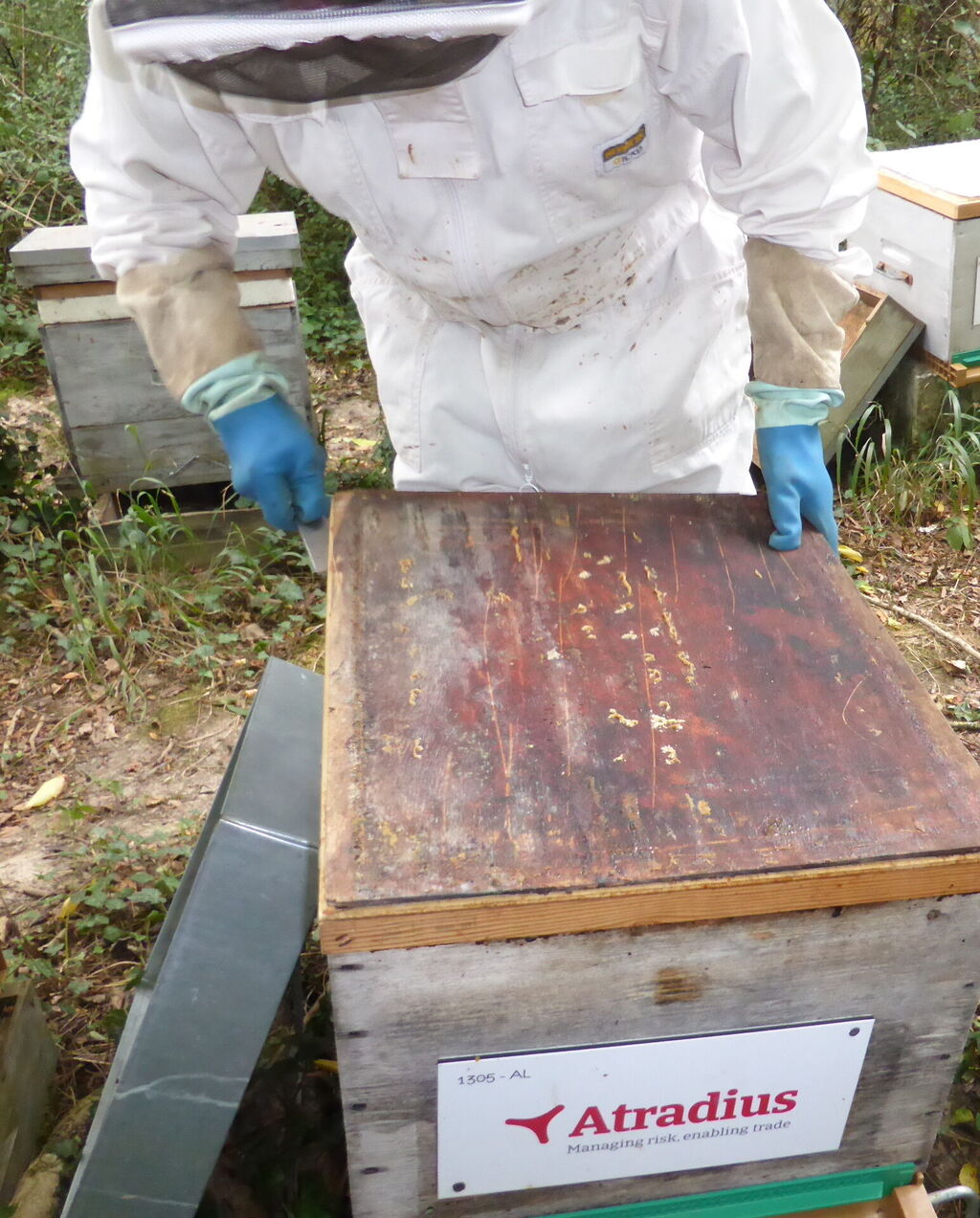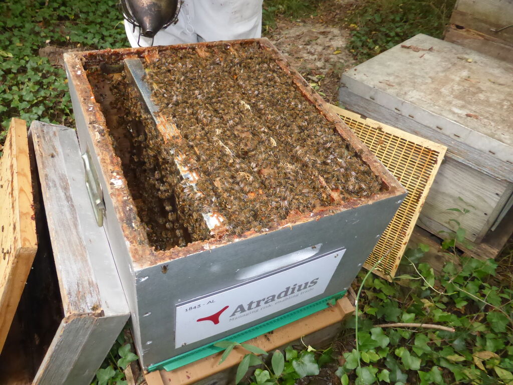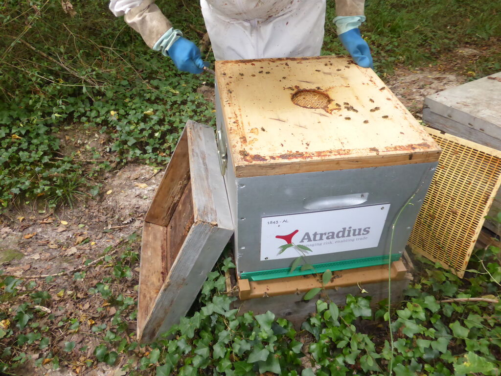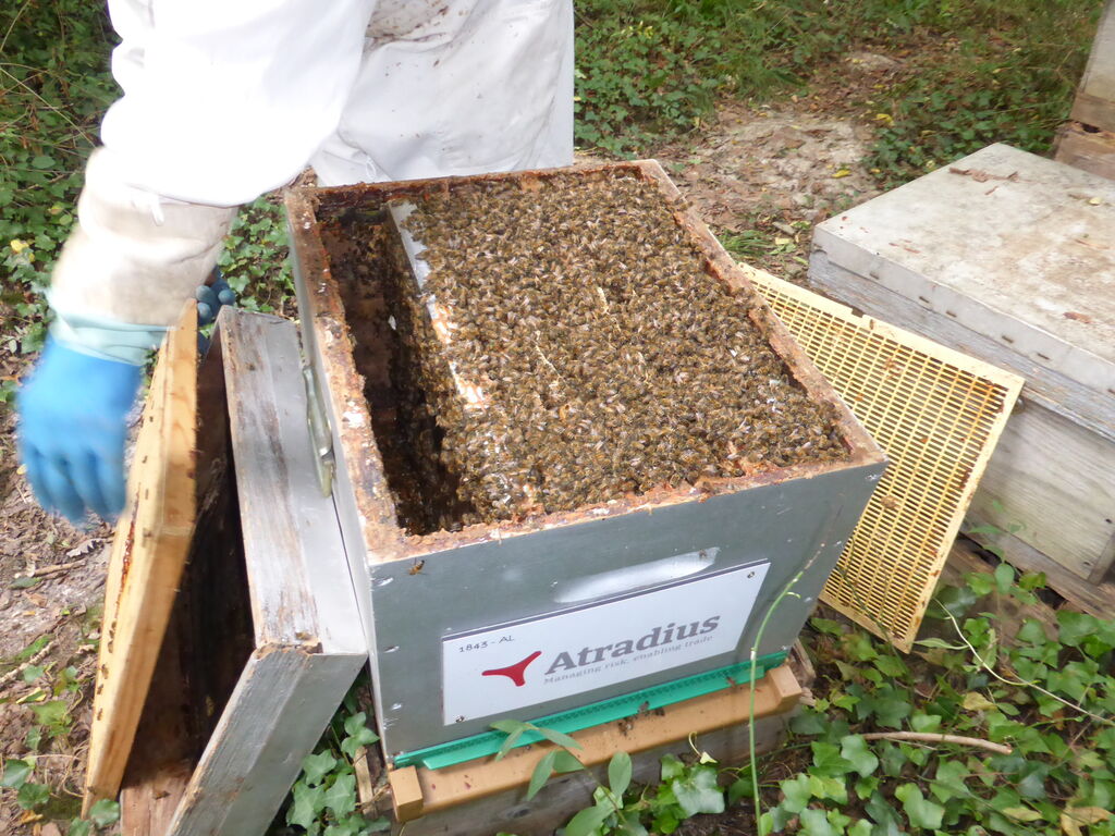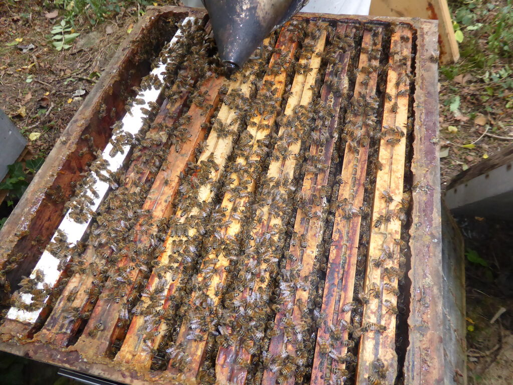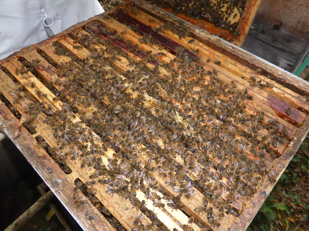 Il nous reste encore quelques ruches à visiter, en veillant toujours à laisser aux abeilles de quoi passer sereinement l’hiver.