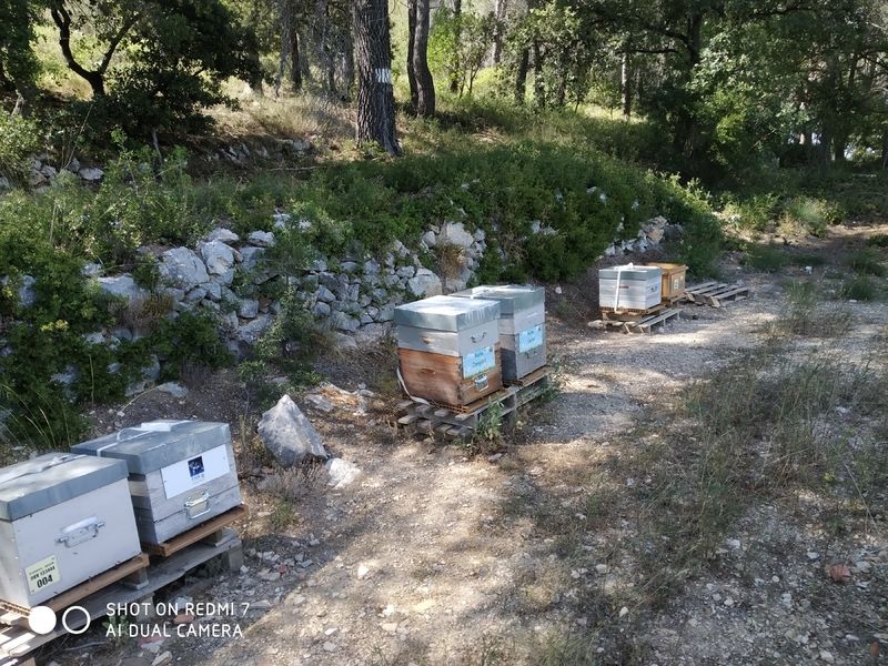 Mes ruchers d’hivernage se trouvent au pied du Garlaban, ce qui me permet, selon les années de récolter du miel de Romarin, de Thym ou de Garrigue.