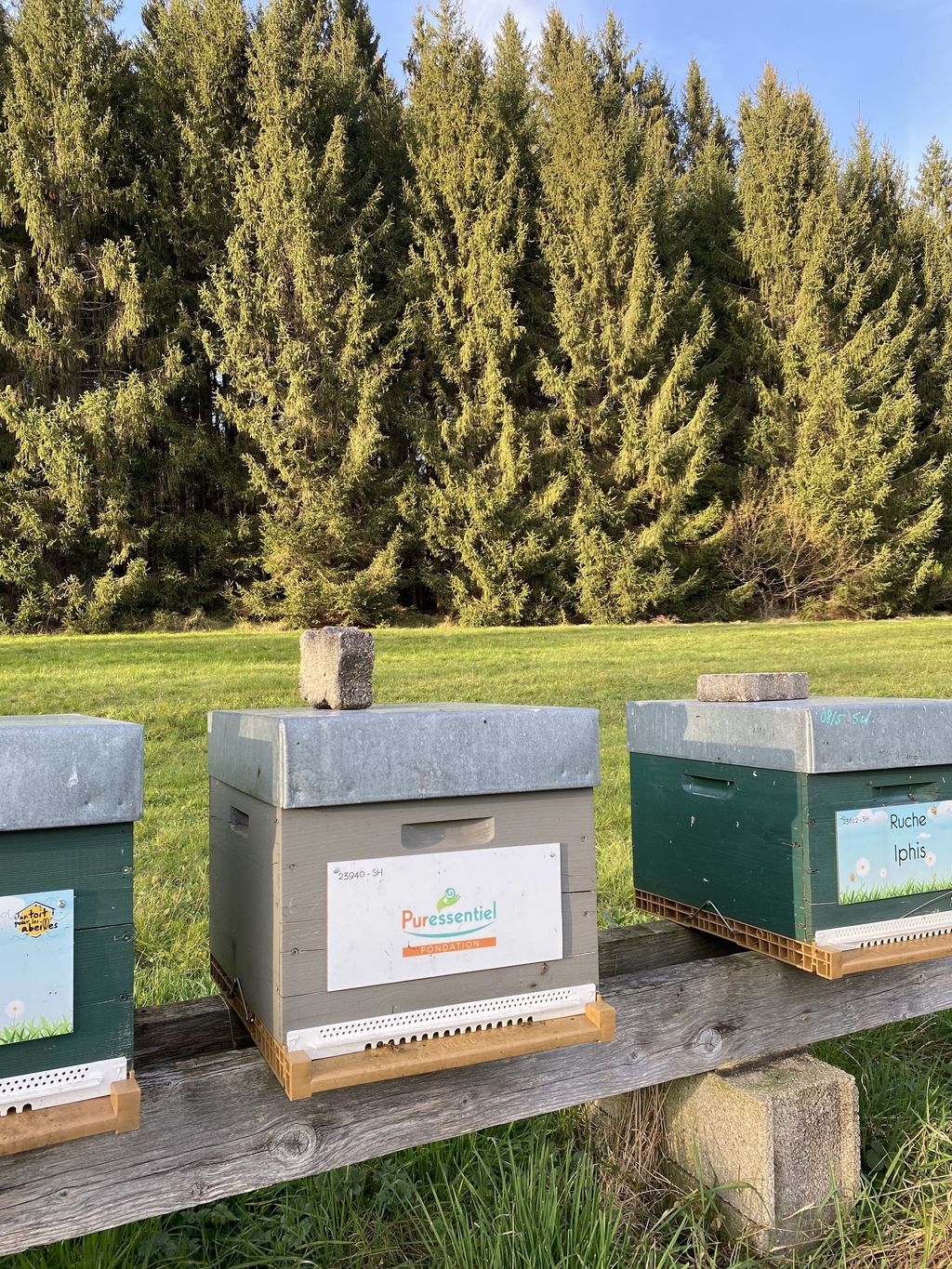 Ce rucher environné de feuillus et de résineux est un véritable sanctuaire pour les abeilles