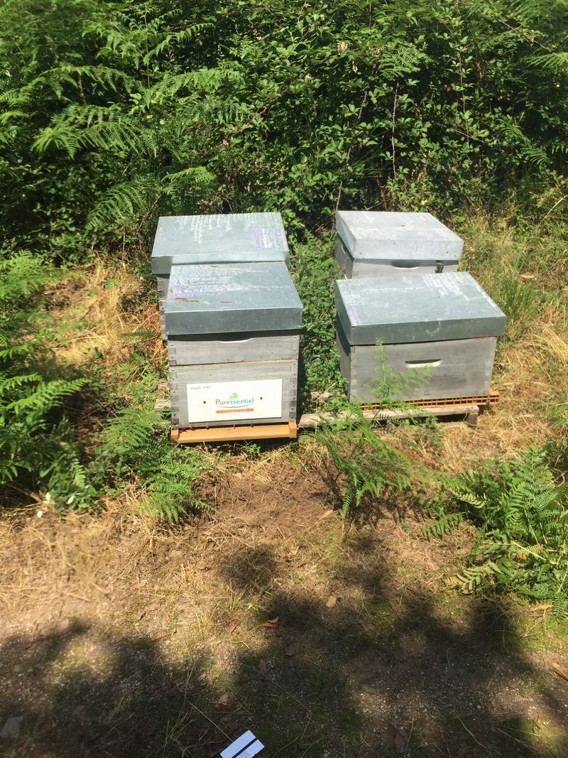 Le rucher parrainé par un « Toit pour les abeilles » est situé au cœur d’une vaste forêt (3 km de rayon) afin de garantir la production de Miels Bio.