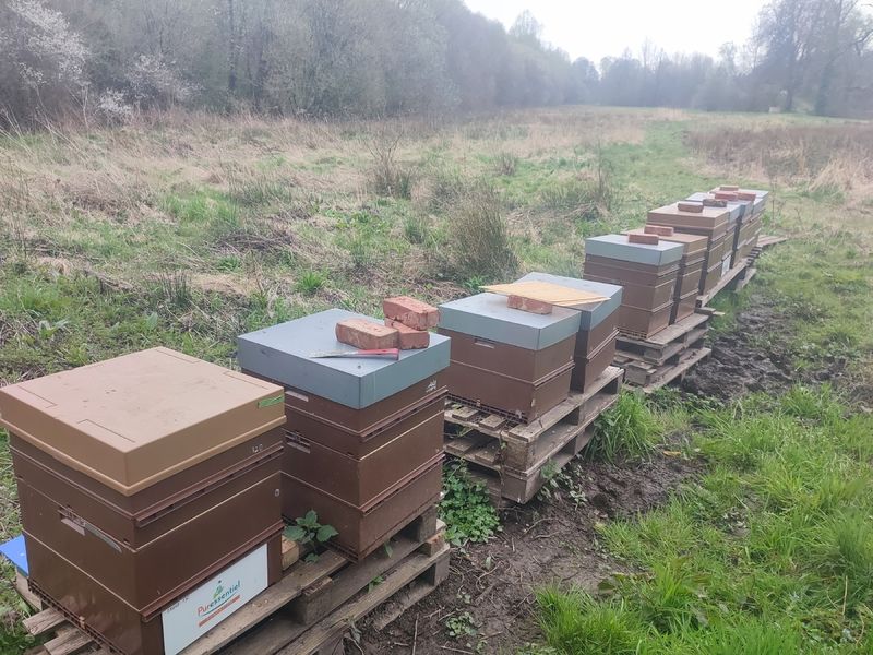 Le printemps 2025 a été précoce et très fleuri, permettant un bon redémarrage des colonies, une production de miel correcte et un bon lancement de l’élevage de reine et de la production d’essaims pour le renouvellement.
