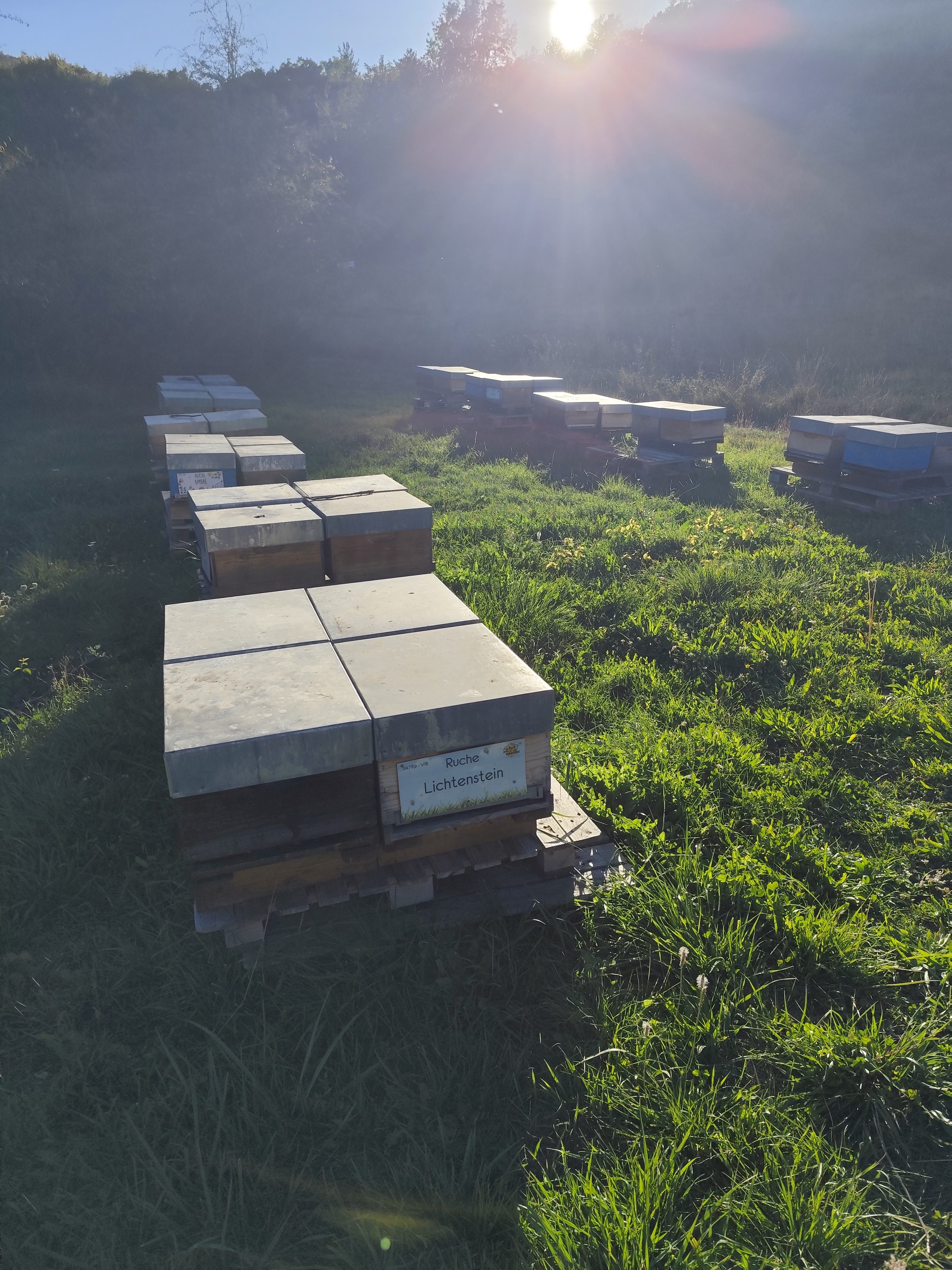 À seulement 500 mètres du rucher, une jachère fleurie de 10 hectares — composée de nombreuses plantes mellifères, dont la phacélie majoritaire — offre encore aujourd’hui une belle miellée.