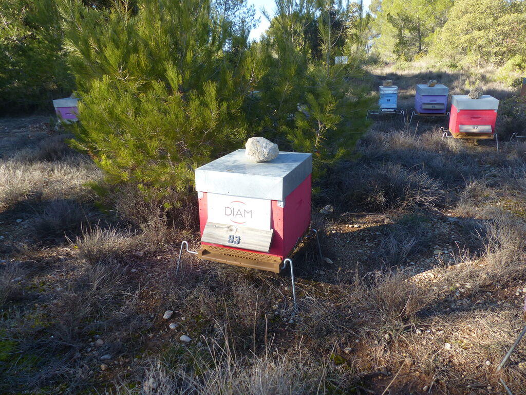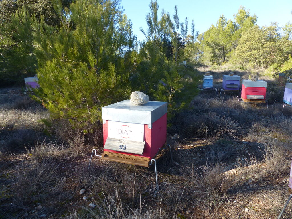 Les cultures environnantes (sainfoin, luzerne, prairie naturelle) et collines avoisinantes (piémont du massif de la Ste Baume : thym, romarin, sarriette…) apportent une alimentation variée aux abeilles.