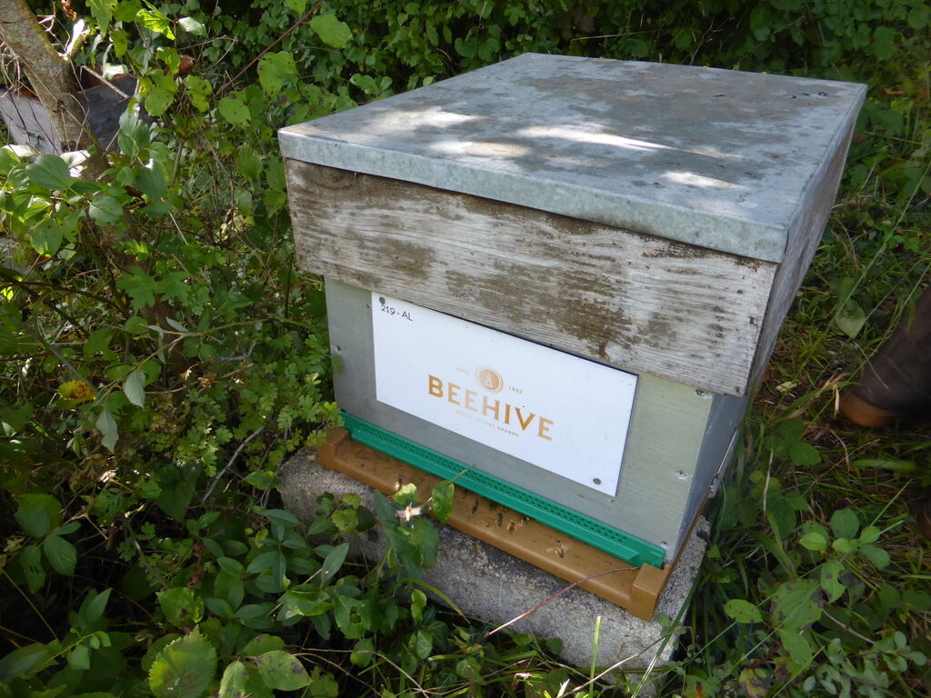 Nous avons choisi avec mon époux qui travaille le bois, de traiter l’ensemble des nouvelles ruches à l’huile de lin chaude en les baignant, les anciennes ruches sont au fur et à mesure repeintes avec une peinture à la farine mélangée à un oxyde naturel rouge. j’accorde beaucoup d’importance à la qualité du matériel.