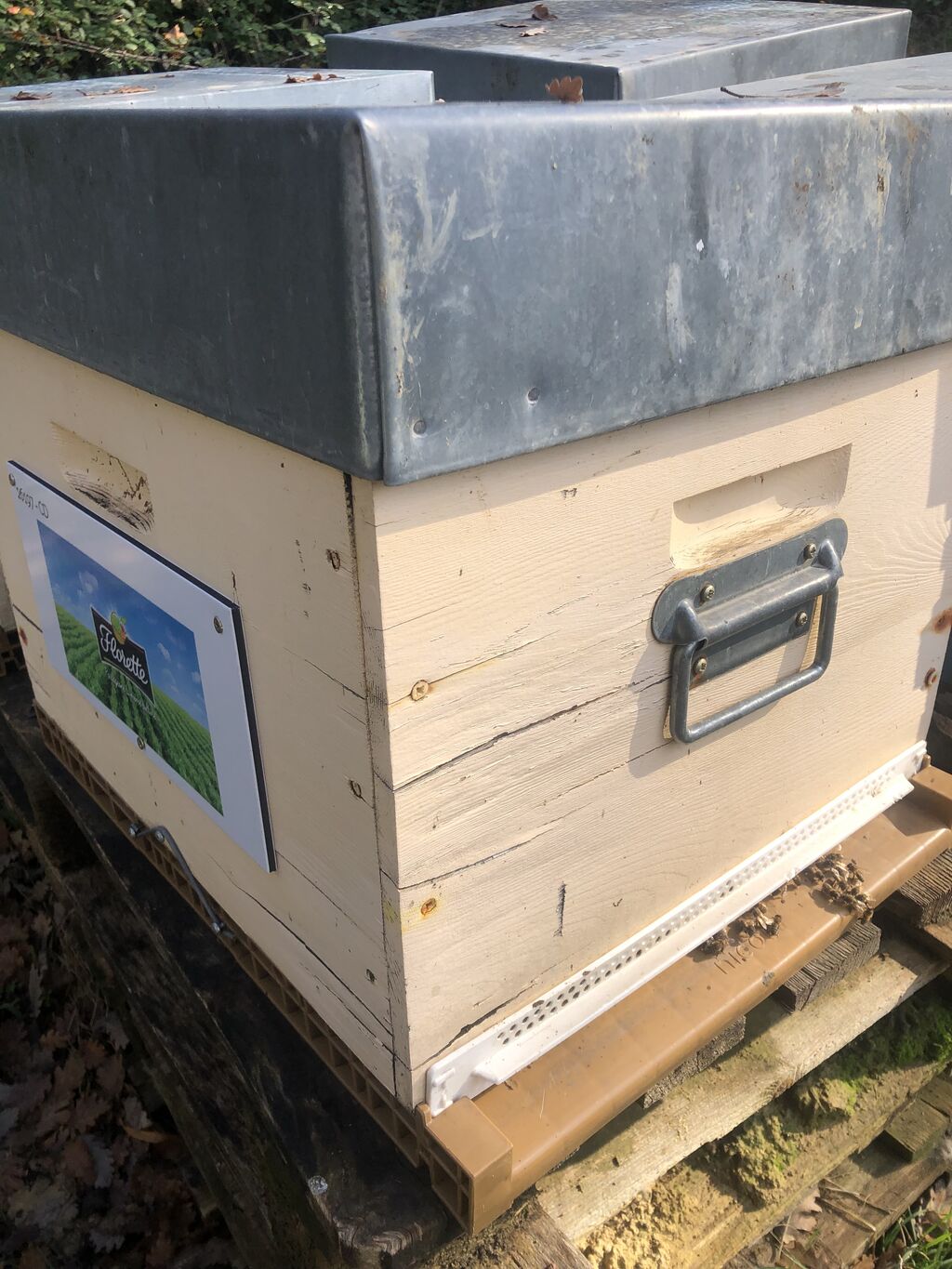 En ce mois de décembre, les travaux hivernaux se poursuivent au rucher : entretien des sites et repérage des ruches à rénover notamment. Avec le temps, le bois des ruches peut se fissurer ou subir des attaques de champignons ou de fourmis. Il se fragilise alors, et les abeilles sont moins bien protégées du froid et de l’humidité.