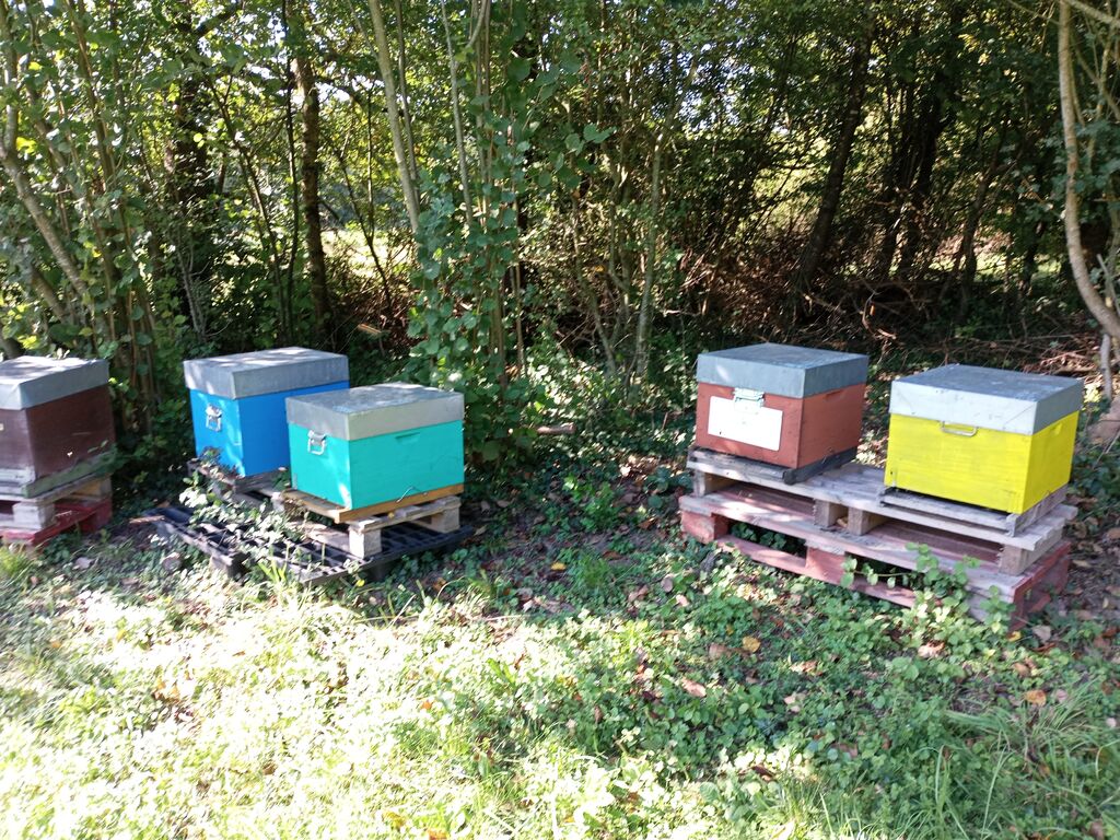 Nos abeilles (Carnica) sont sur un côteau où elles butinent le nectar des fleurs de Printemps mais aussi où elles trouvent de l'Acacia et du Châtaignier.