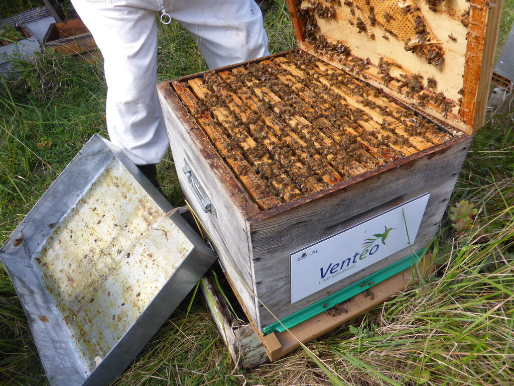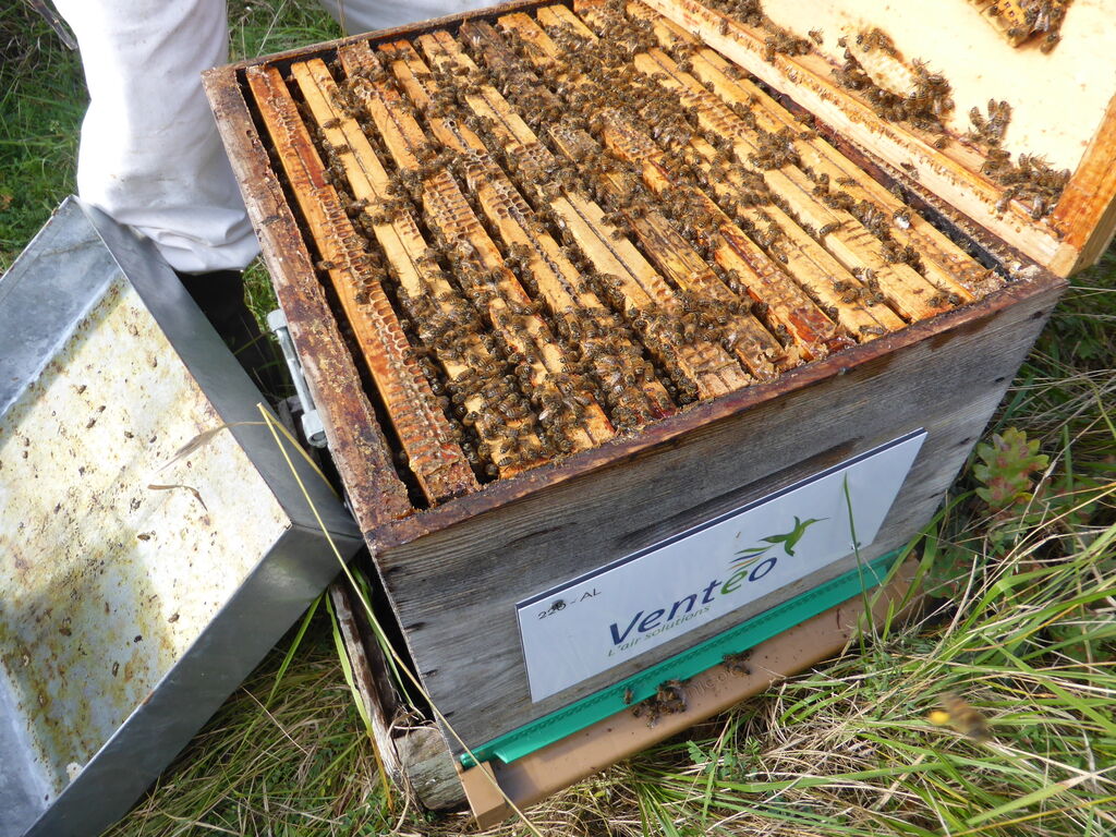 Il nous reste encore quelques ruches à visiter, en veillant toujours à laisser aux abeilles de quoi passer sereinement l’hiver.