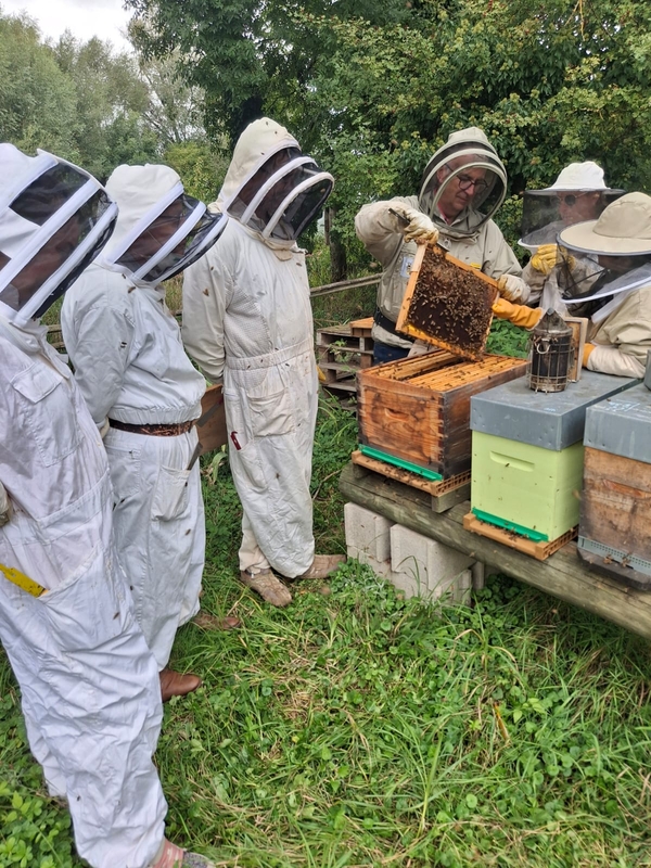 Démonstrations d’apiculture Manipulation de cadres, explications sur le matériel, bonnes pratiques pour protéger les abeilles.
